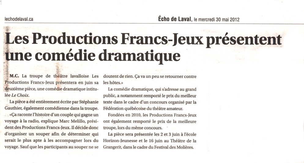 Les Productions Francs-Jeux présentent une comédie dramatique